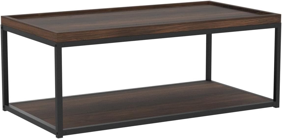 Constructed with a sturdy metal frame and a durable shelf, this coffee table is built to last. The two-tier design provides ample space for storing your favorite books, magazines, and decorative items, while the recessed accent adds a touch of sophistication.