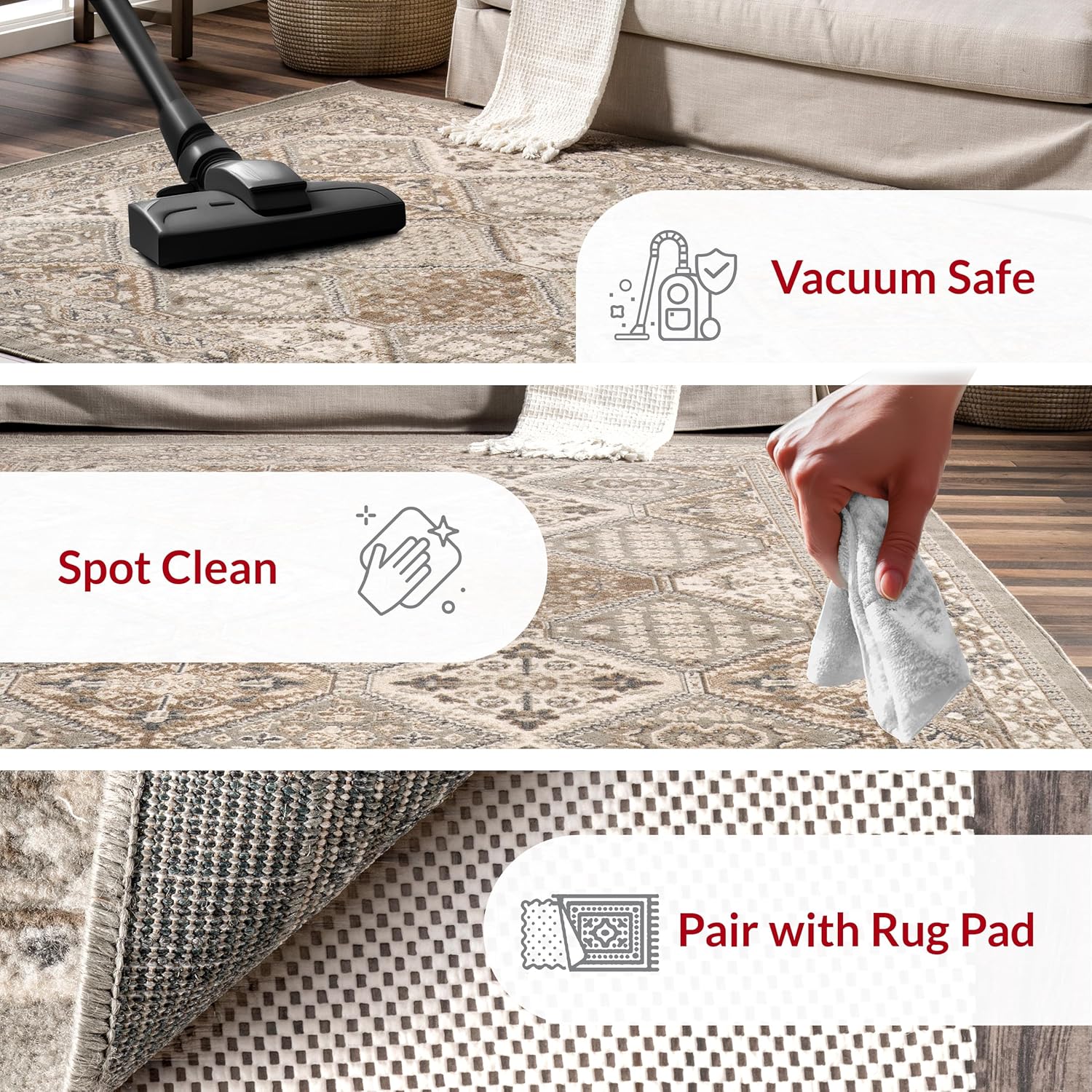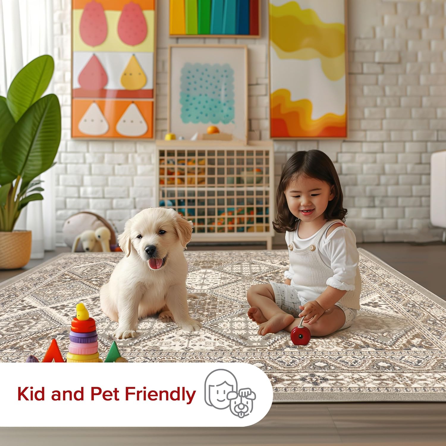Made with high-quality materials, this rug is not only stunning but also stain-resistant, making it perfect for high-traffic areas such as the bedroom, dining room, living room, hallway, office, kitchen, or entryway. Its generous size of 9×12 feet makes it ideal for larger spaces, while its traditional tiled pattern adds a timeless charm to any room.